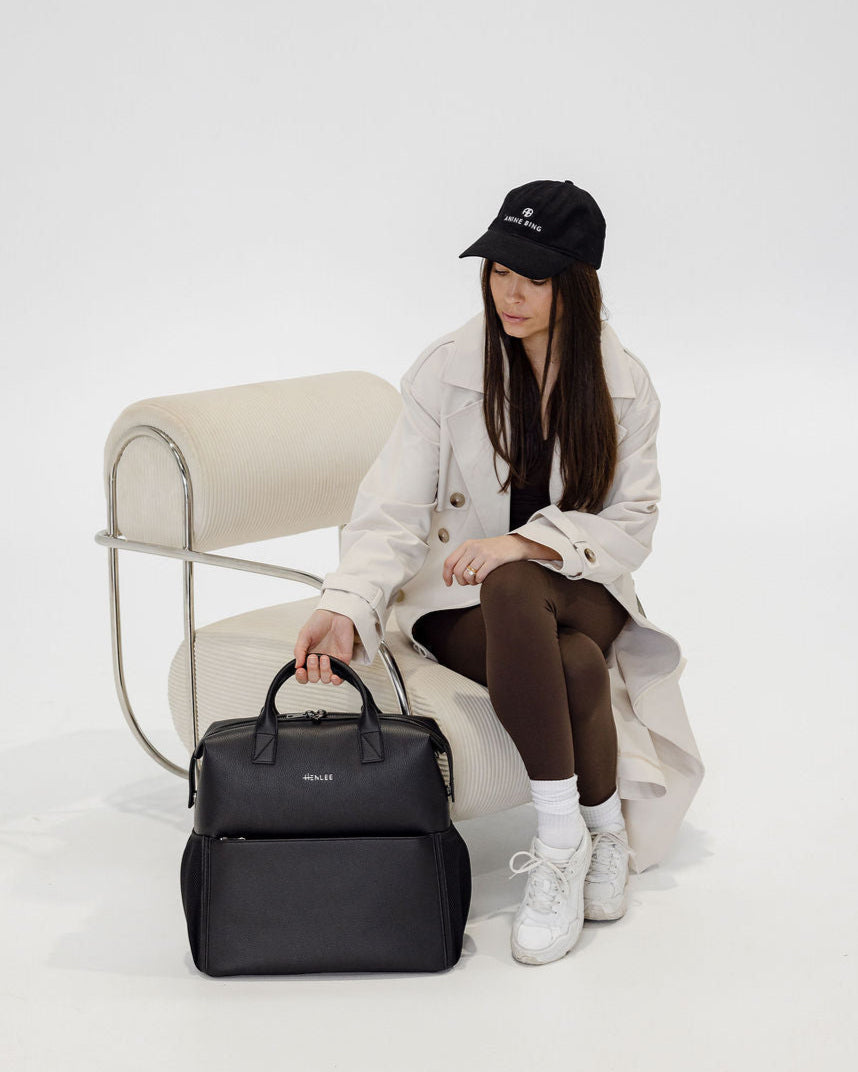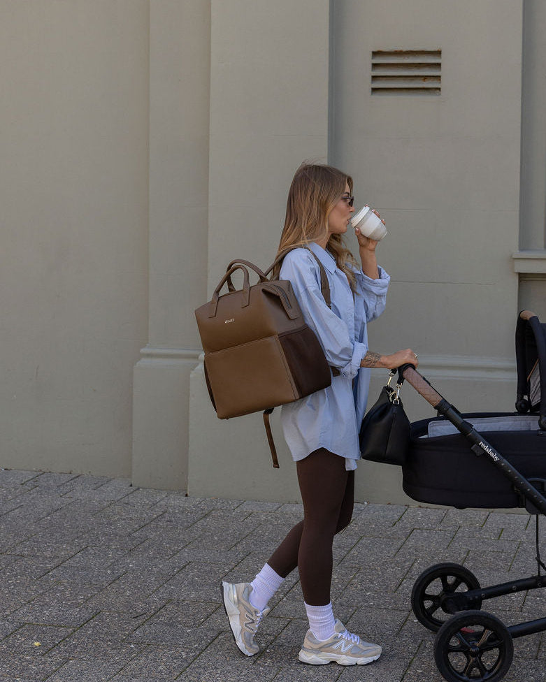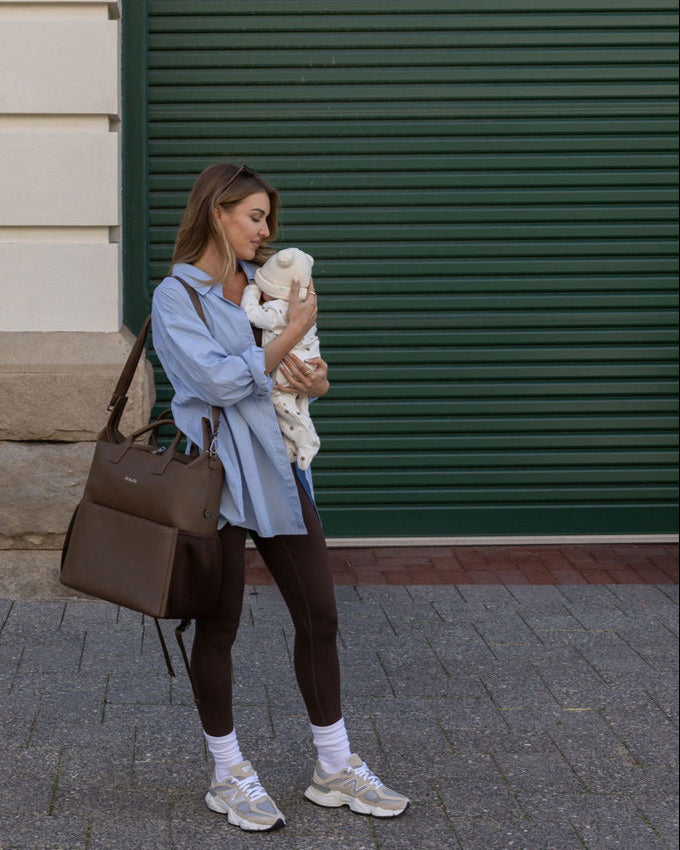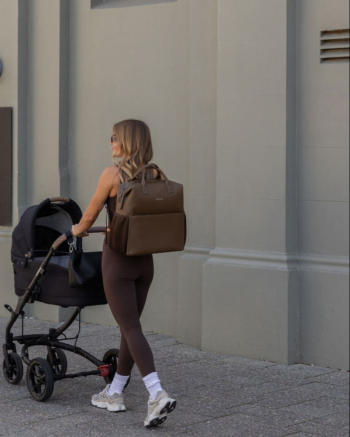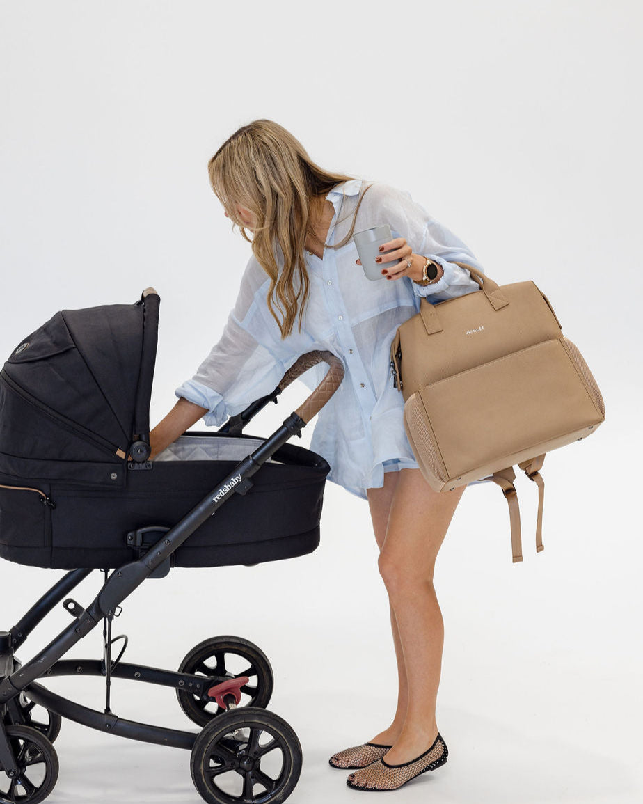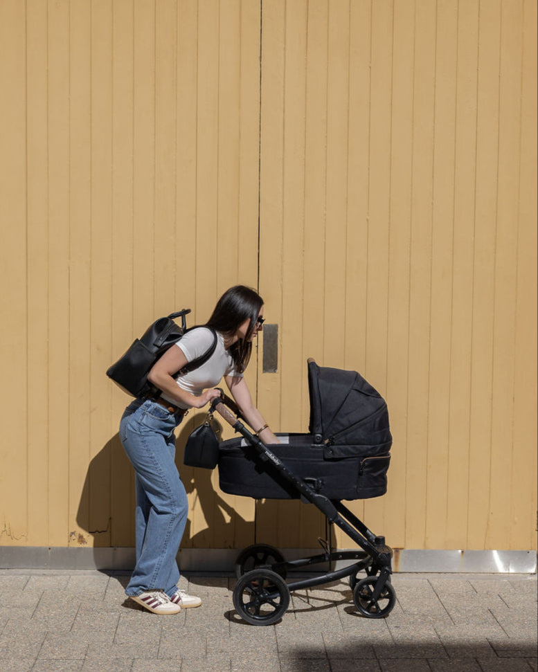 D-rings on both sides so the bag can be worn as a shoulder bag with the shoulder strap attachment (included) or attached to your pram via pram straps (sold separately).