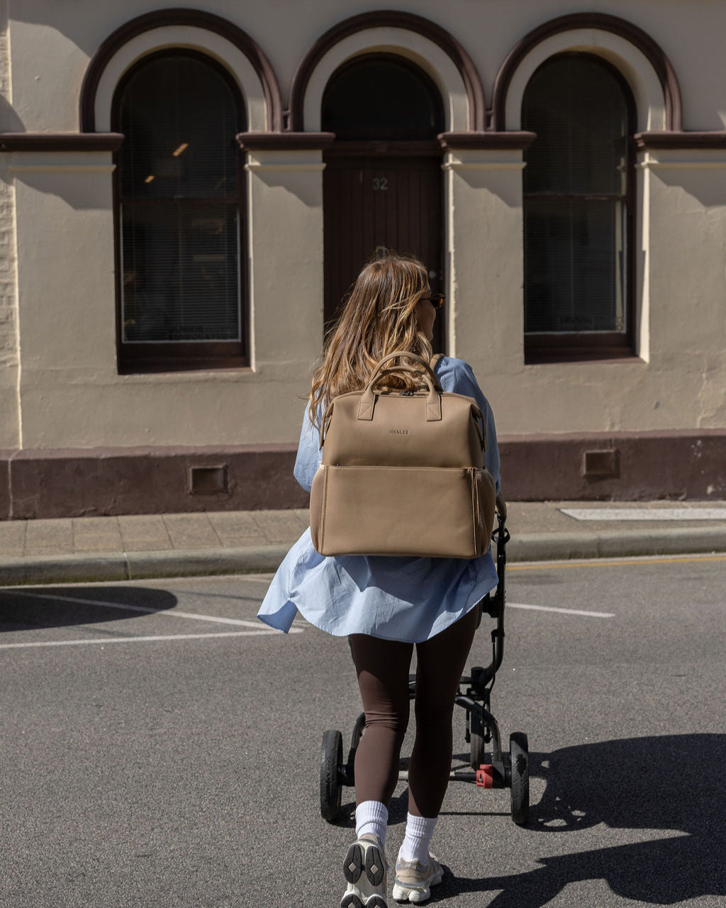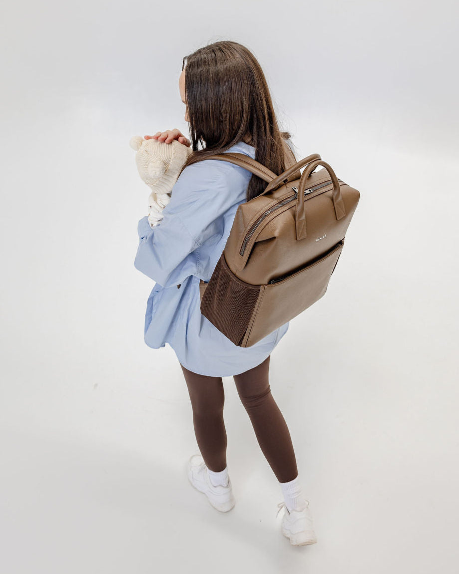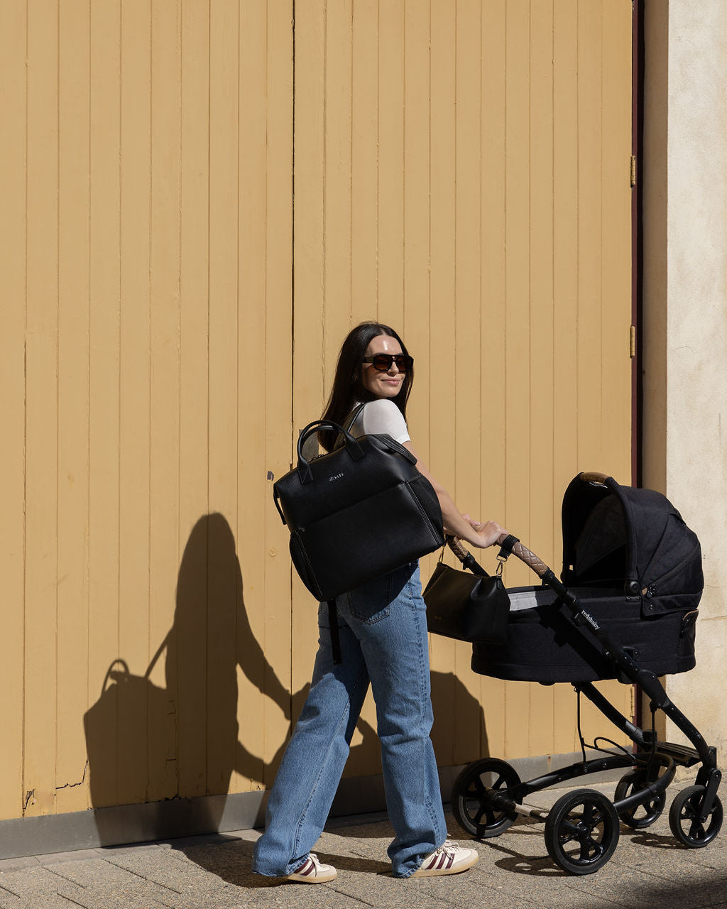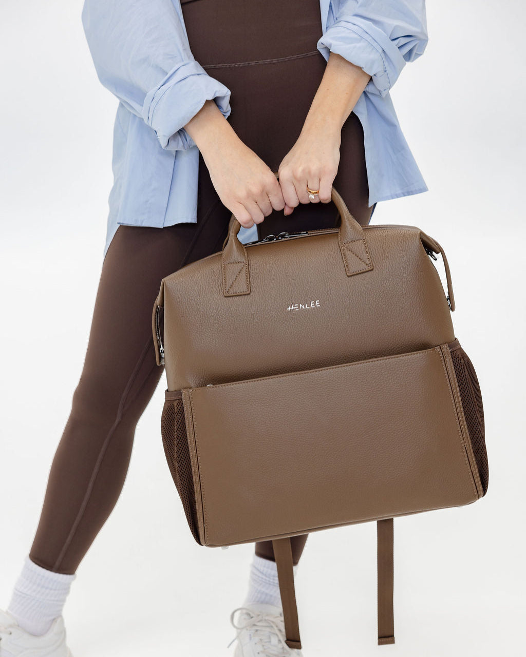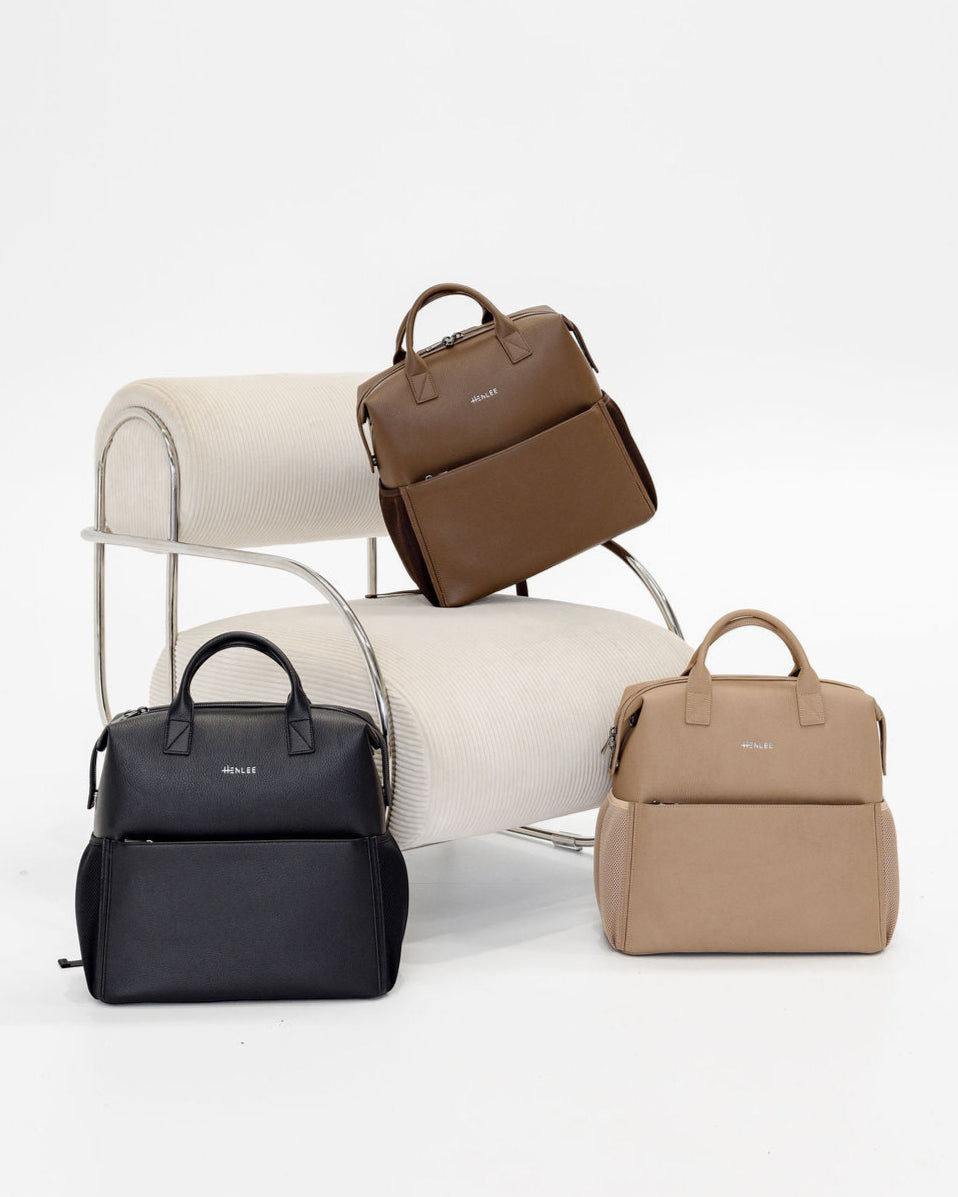 D-rings on both sides so the bag can be worn as a shoulder bag with the shoulder strap attachment (included) or attached to your pram via pram straps (sold separately).