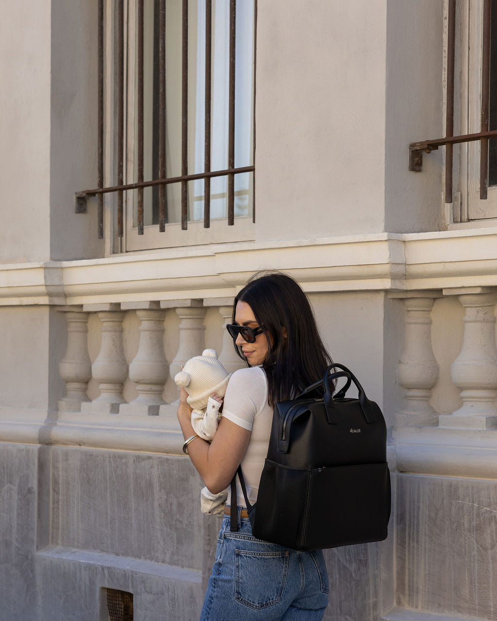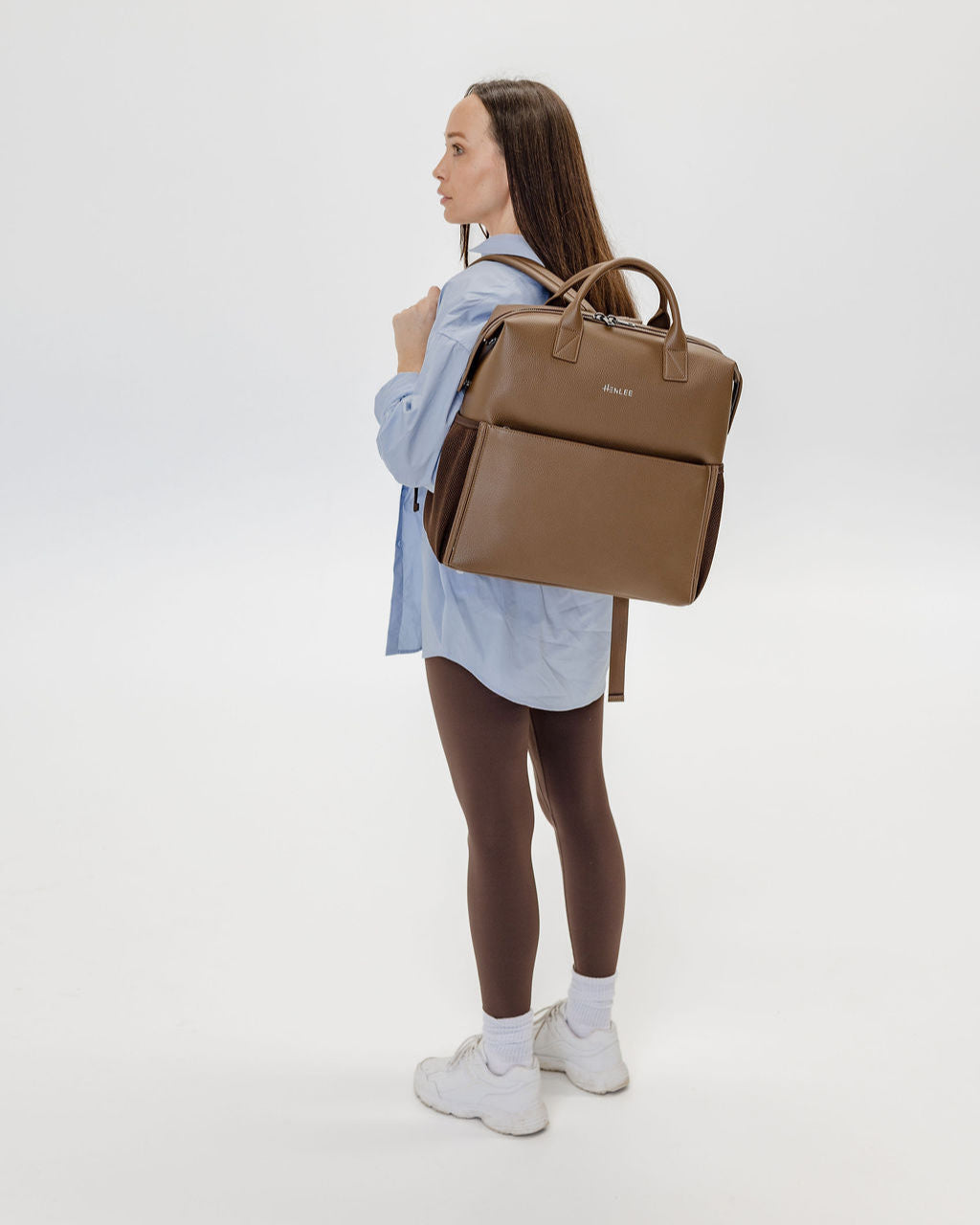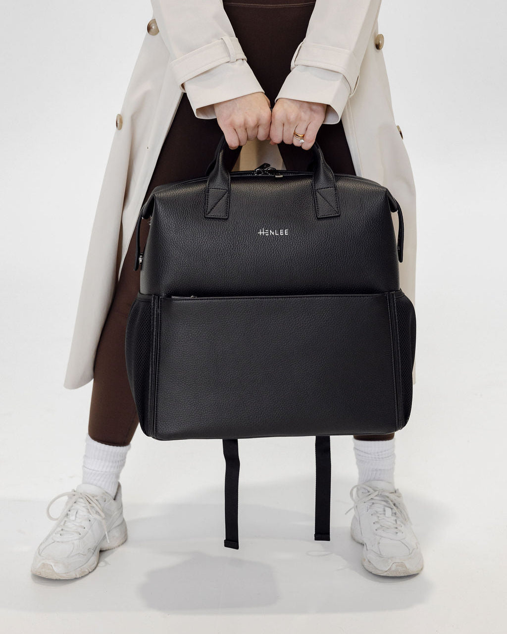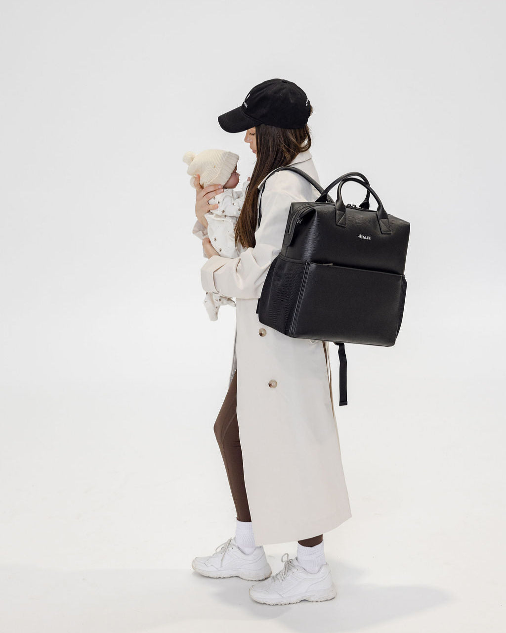 D-rings on both sides so the bag can be worn as a shoulder bag with the shoulder strap attachment (included) or attached to your pram via pram straps (sold separately).