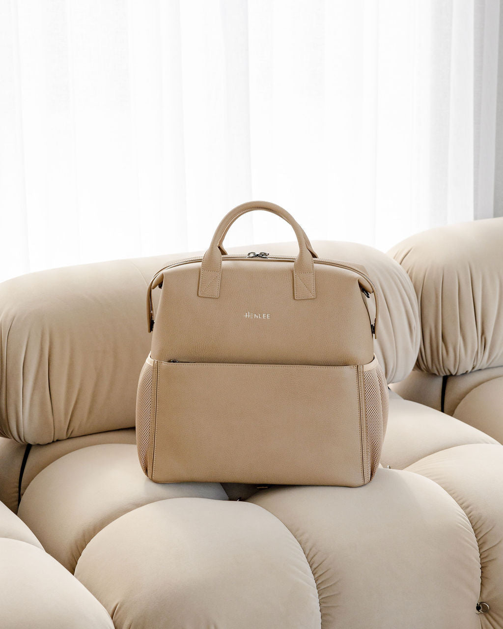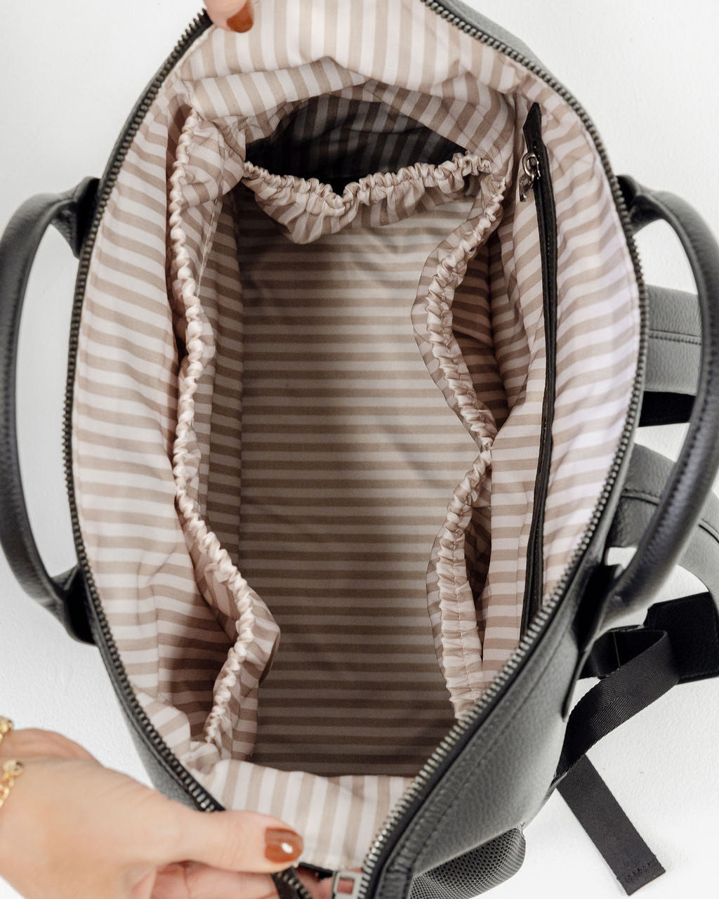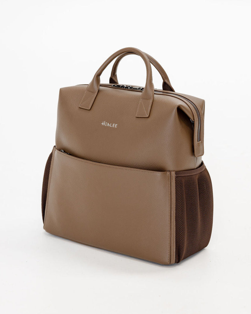 Water & stain resistant eco nylon in our custom fawn stripe pattern, making it easy to see what's inside.