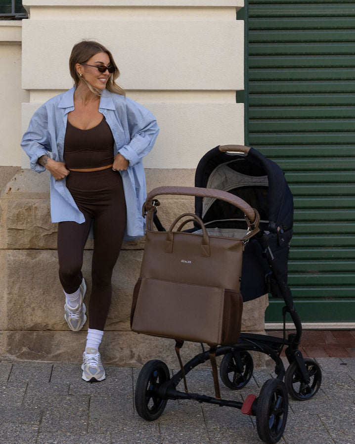 Good idea to attach the Jordie Luxe bag to pram , will be very handy!