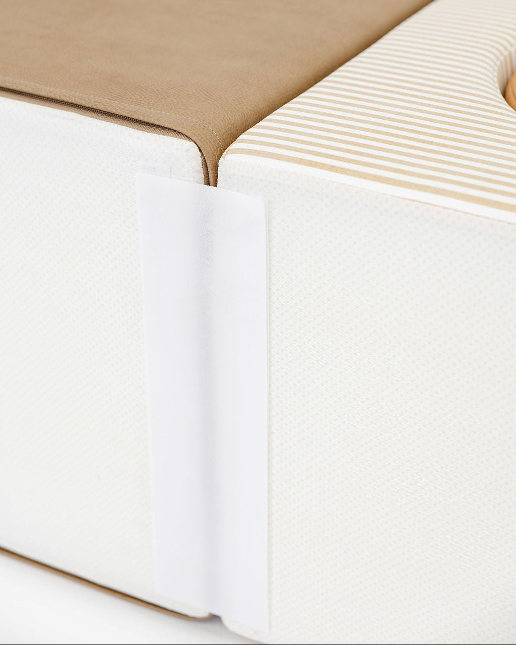 Underside: Non slip grippy fabric with velcro connectors